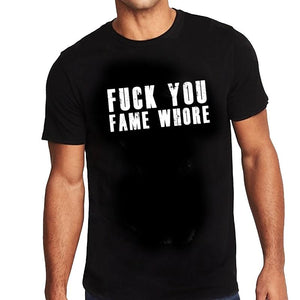 The Fuck You Fame Whore Men's T shirt that has become a classic staple in every rock n roll closet. Available in Medium, Large, XL & XXL.